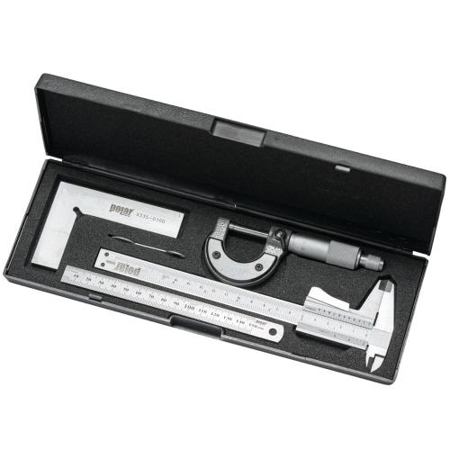 Skolesæt, 4 dele Fra danske POLAR Skydelære: 0-150 mm x 0,05 mmMikrometerskrue: 0-25 mm x 0,01 mmStållineal: 0-150 mmVinkel: 70 x 100 mm (Læs mere)